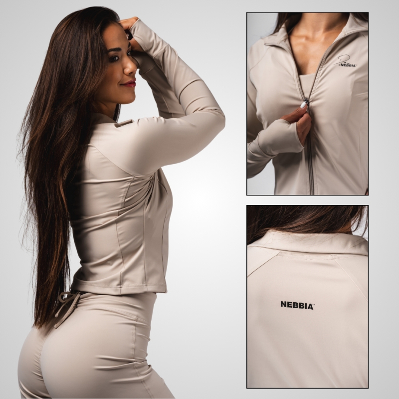 Dámska fitness mikina krémovej farby ktorá vznikla v spolupráci s hlavnou ambasádorkou NEBBIA - Denisou Tran Vanovou.