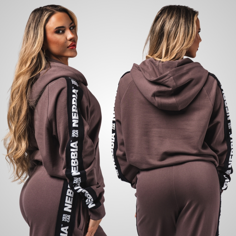 NEBBIA - Dámska športová mikina OFF-DUTY 489 (dark brown)