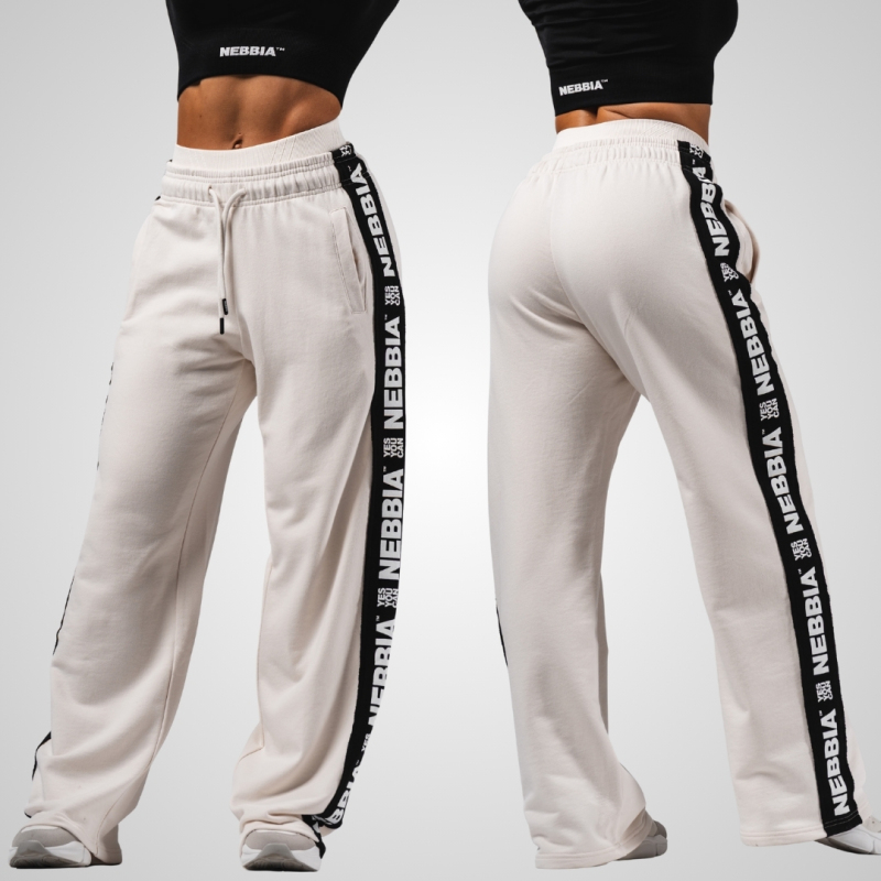 NEBBIA - Dámske fitness tepláky Straight Leg URBAN 490 (cream)