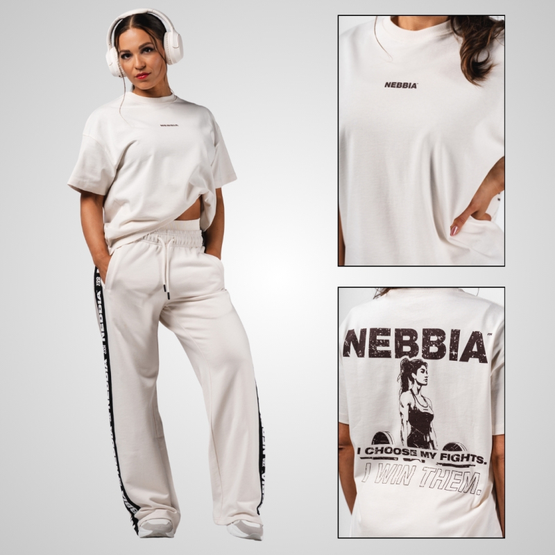 NEBBIA - Dámske fitness tričko s oversized strihom RESET 491 (cream)