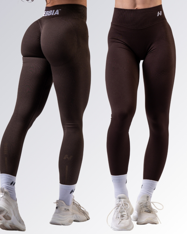 Bezšvové fitness legíny od značky NEBBIA v tmavohnedej farbe s push-up efektom