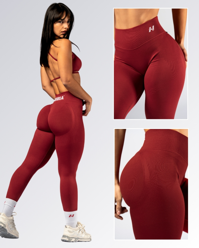 Bezšvové fitness legíny od značky NEBBIA v červenej farbe s push-up efektom