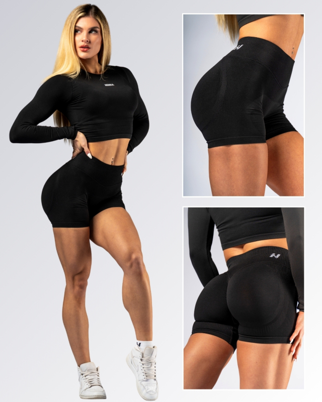 Čierne dámske bezšvové šortky s vysokým pásom od značky NEBBIA