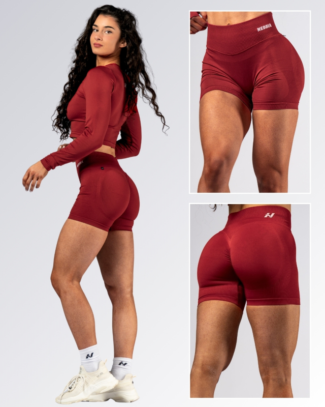 Dámske bezšvové šortky od značky NEBBIA s vysokým pásom v bordovo-červenej farbe