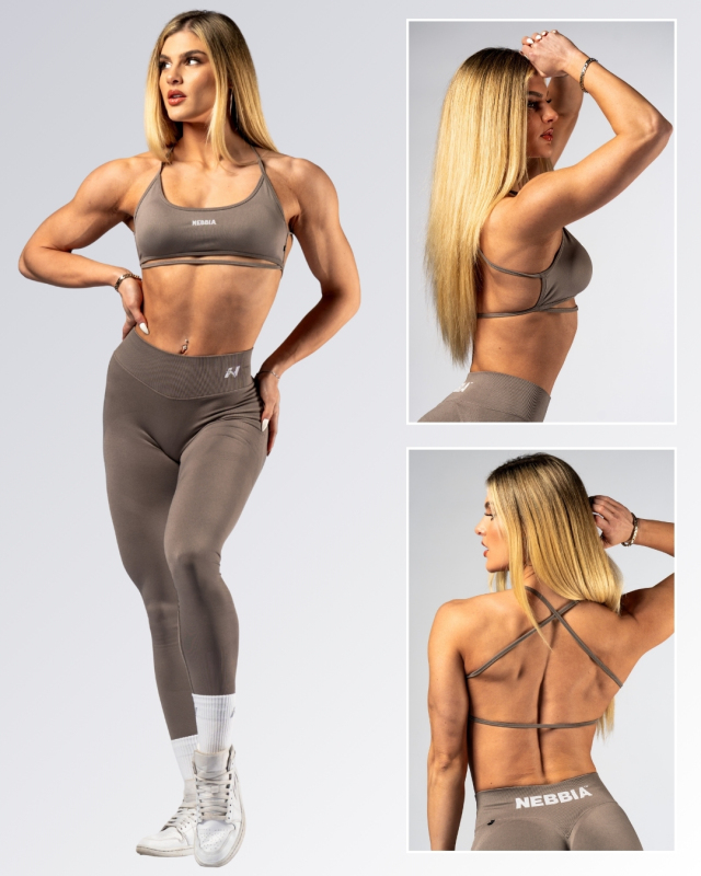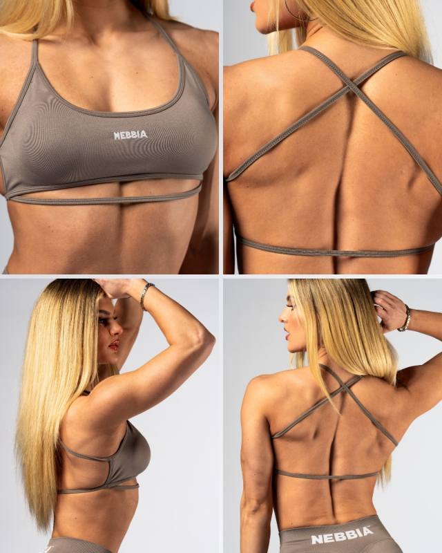 NEBBIA - Open-back športová podprsenka POWER 890 (light brown ash) - M