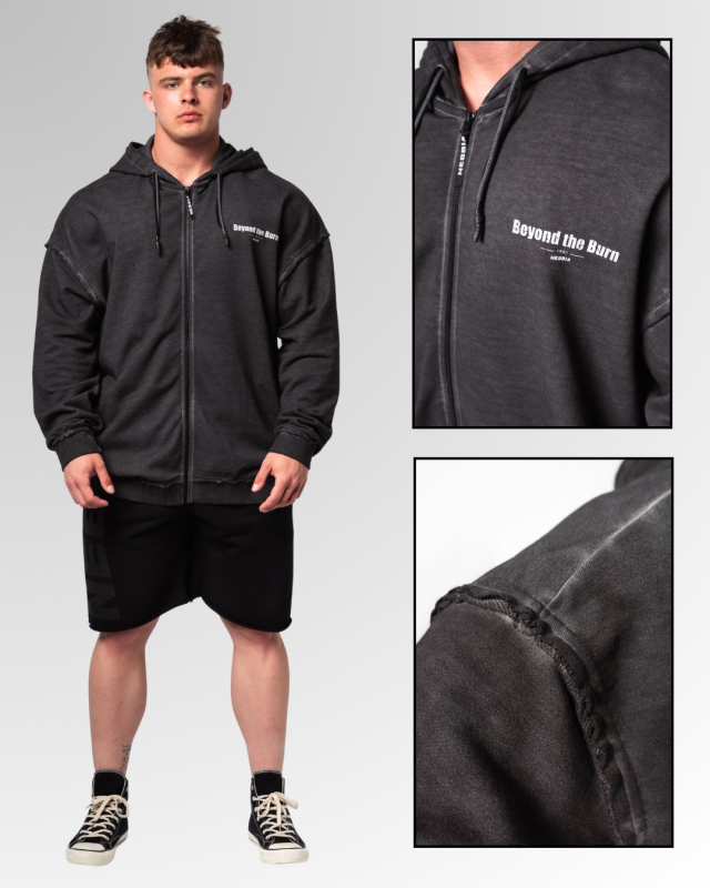 Čierna pánska fitness mikina na zips od značky NEBBIA s “Washed off” efektom