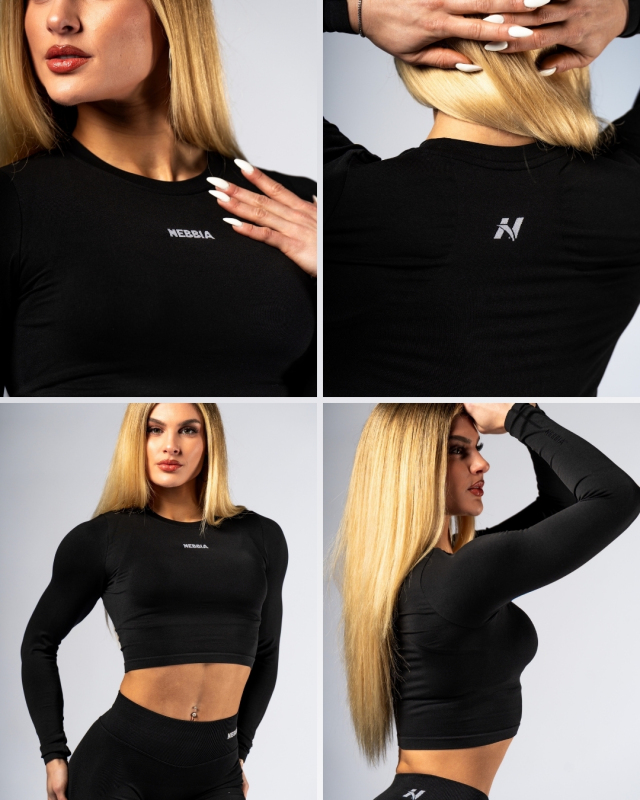 NEBBIA - Seamless crop top s dlhým rukávom POWER 892 (black) - M