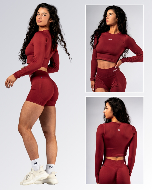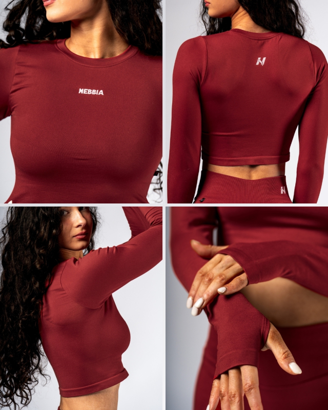 Bezšvový crop top od značky NEBBIA s dlhým rukávom v bordovo-červenej farbe