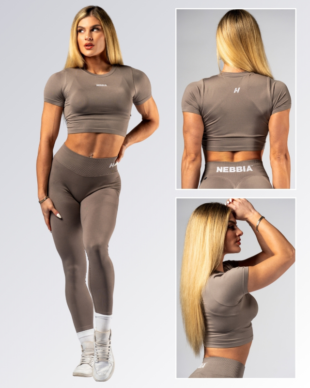 Bezšvový crop top s krátkym rukávom od značky NEBBIA v svetlohnedej farbe