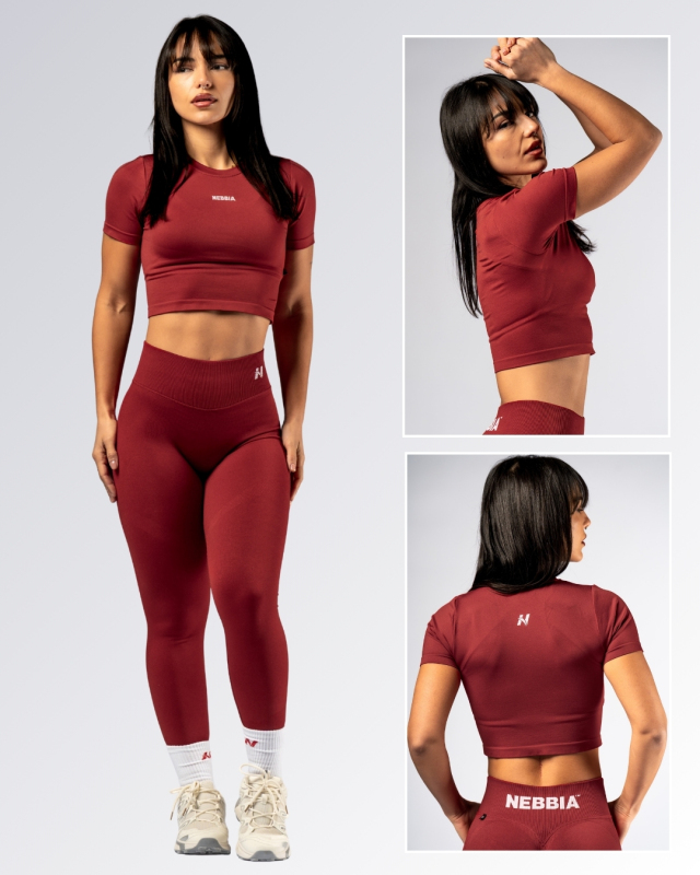 Bezšvový crop top s krátkym rukávom od značky NEBBIA v červenej farbe