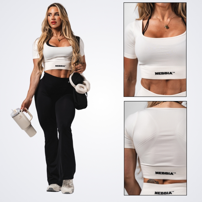 NEBBIA - Tvarujúci bezšvový crop top FLOW SEAMLESS 499 (cream)